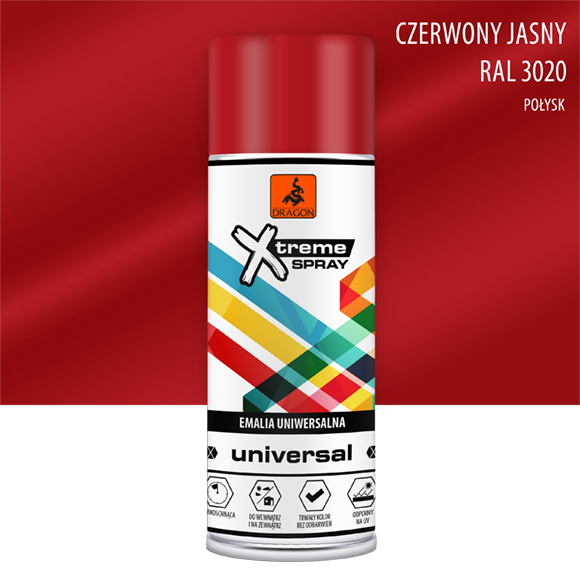 Zamów w przeciągu 02:21:32 a wysyłkę otrzymasz jutroUniversalus Emalio Purškiklis Czerwony Jasny RAL 3020 400ml Dragon